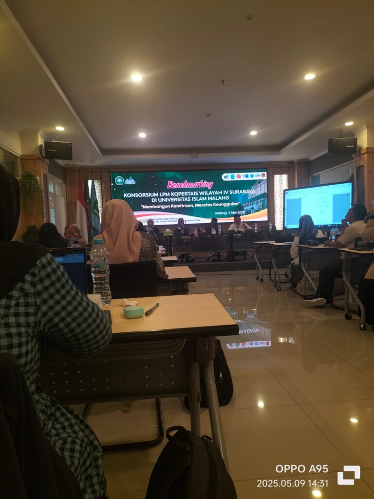 Dalam rangka peningkatan mutu layanan akademik dan pengembangan kelembagaan, rombongan dari Konsorsium Lembaga Penjaminan Mutu Kopertais Wilayah IV Surabaya melakukan kegiatan benchmarking ke Universitas Islam Malang (UNISMA) pada tanggal 9 Mei 2025. Kegiatan ini dipimpin langsung oleh Ketua Konsorsium, didampingi oleh beberapa pejabat struktural dan staf terkait.