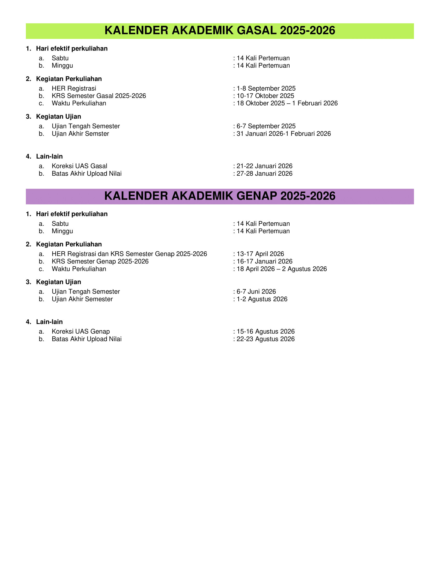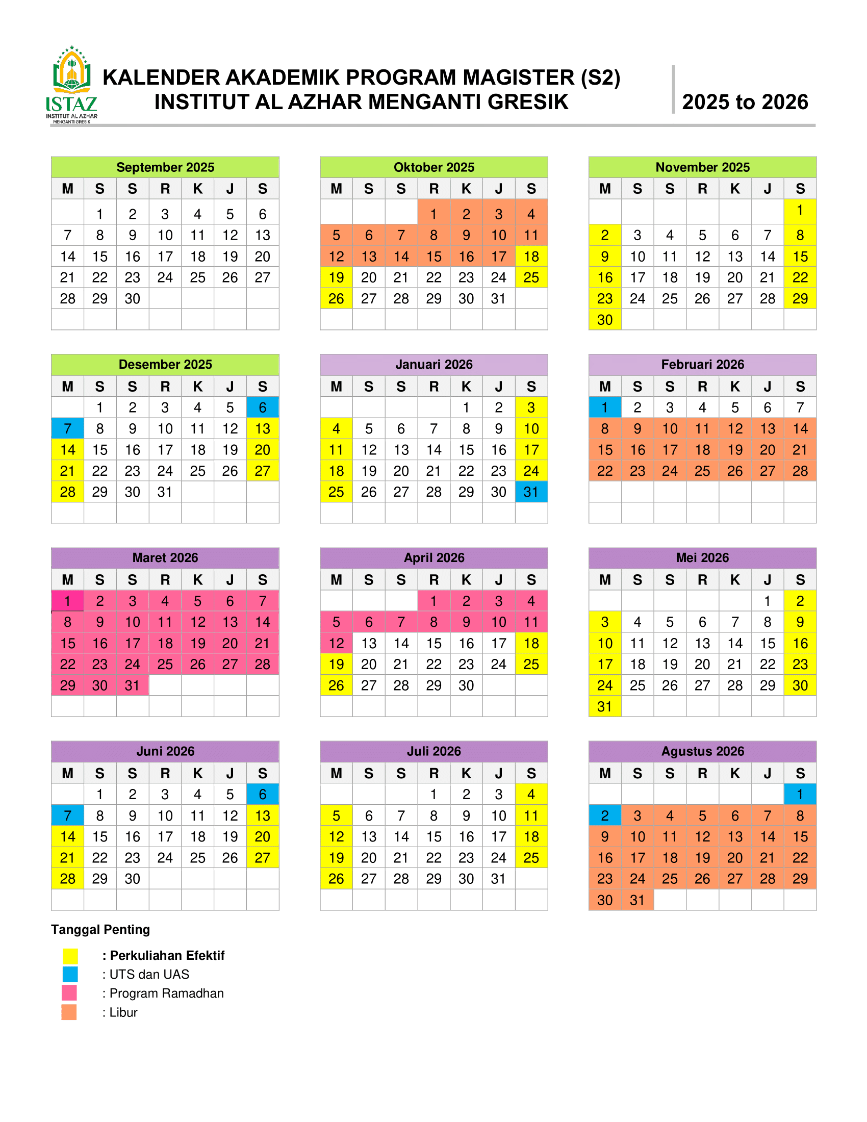 JADWAL KULIAH S2 DAN KALENDER AKADEMIK
