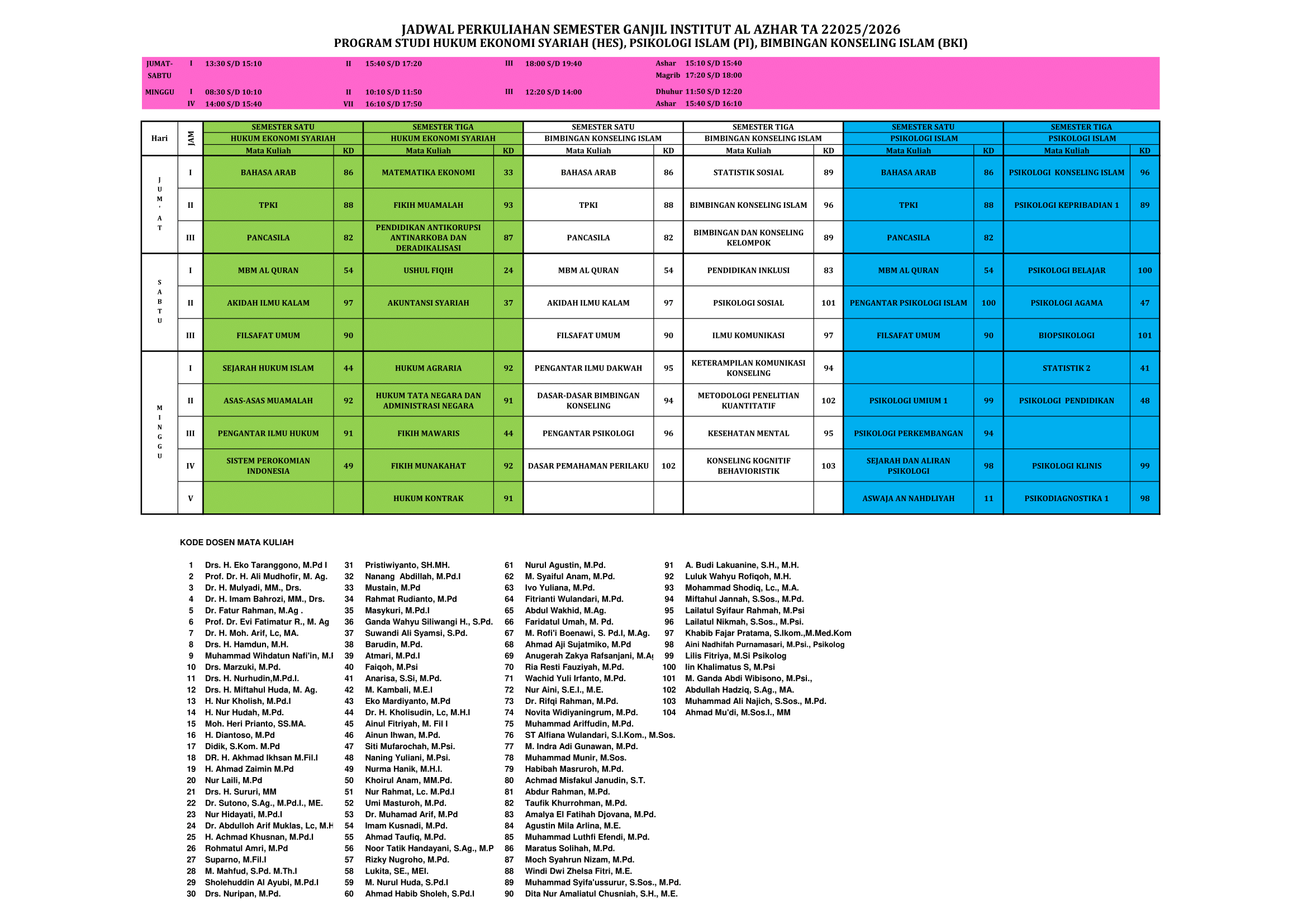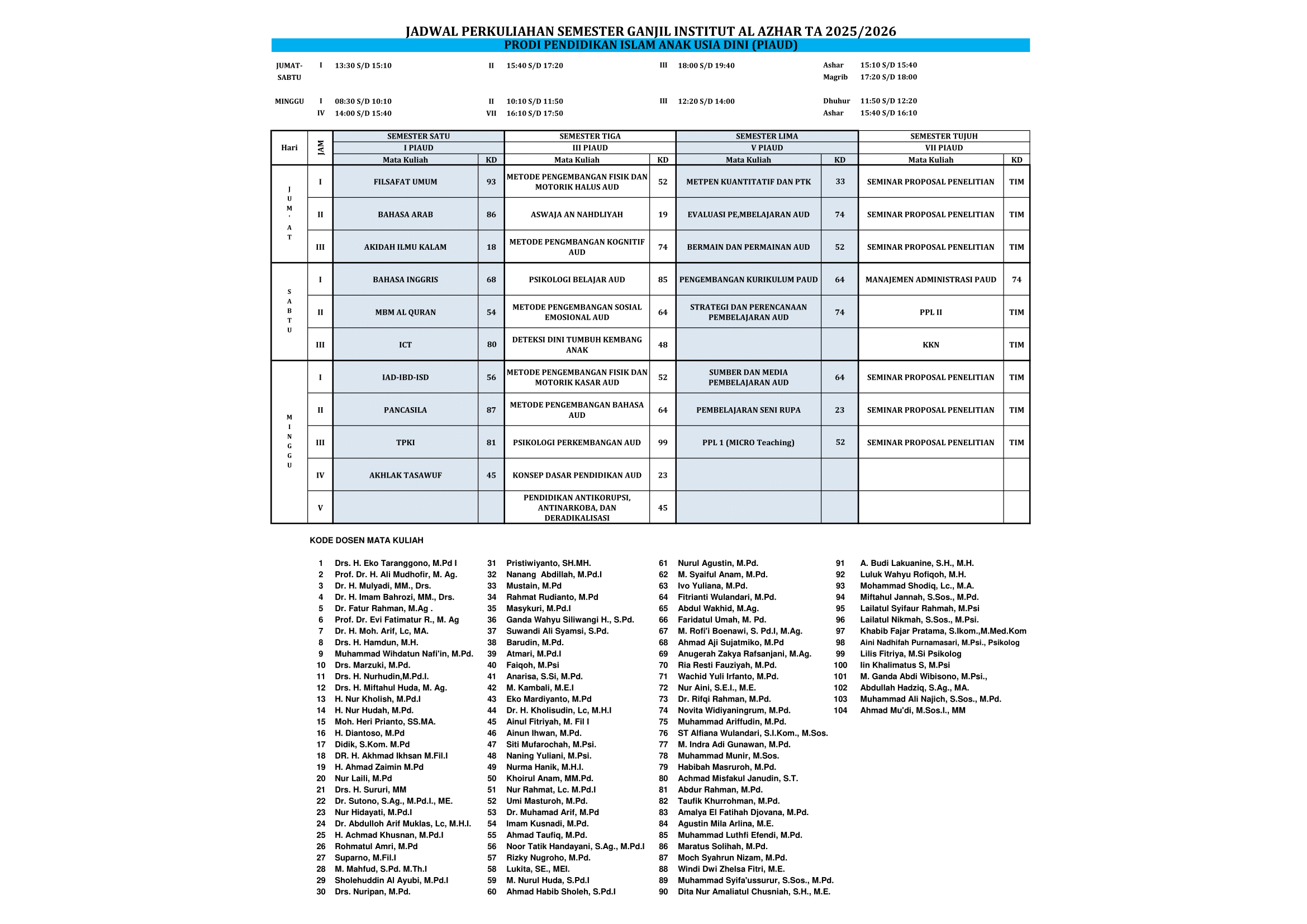 PENGUMUMAN JADWAL SEMESTER GASAL 2025-2026By Admin Istaz / August 23, 2025 Assalaamu’alaikum wa rahmatullahi wa barakaatuhDiberitahukan kepada seluruh dosen dan mahasiswa Institut Al Azhar Menganti Gresik, bahwa jadwal mengajar untuk Semester Gasal Tahun Akademik 2025 telah resmi diterbitkan. Mohon untuk memperhatikan jadwal masing-masing.” DOWNLOAD !!!